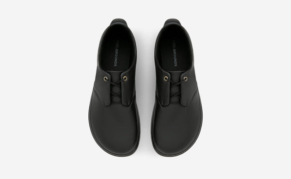 Derby ist der perfekte Barfußschuh, wenn du dich schick kleiden willst, ohne auf Komfort zu verzichten. Er ist aus veganem Oleatex®-Kunstleder mit bis zu 60 % biobasiertem Anteil gefertigt und vereint ökologische Innovation mit Langlebigkeit und hochwertiger Verarbeitung. Das schlanke, wasserabweisende Obermaterial macht ihn zum vielseitigen Begleiter – ob fürs Büro oder für festliche Anlässe. Die weich gepolsterte Ferse sorgt für angenehmen Komfort, die individuell anpassbare Schnürung für optimalen Halt – ganz gleich, wie hoch dein Spann ist. Eine dezente Anziehhilfe an der Ferse macht das Hineinschlüpfen besonders leicht. Die neu entwickelte Laufsohle mit eleganter Silhouette erinnert dezent an einen klassischen Absatz – ohne das natürliche Barfußgefühl zu beeinträchtigen. Inklusive herausnehmbarer Einlegesohle – für eine Passform ganz nach deinen Bedürfnissen.